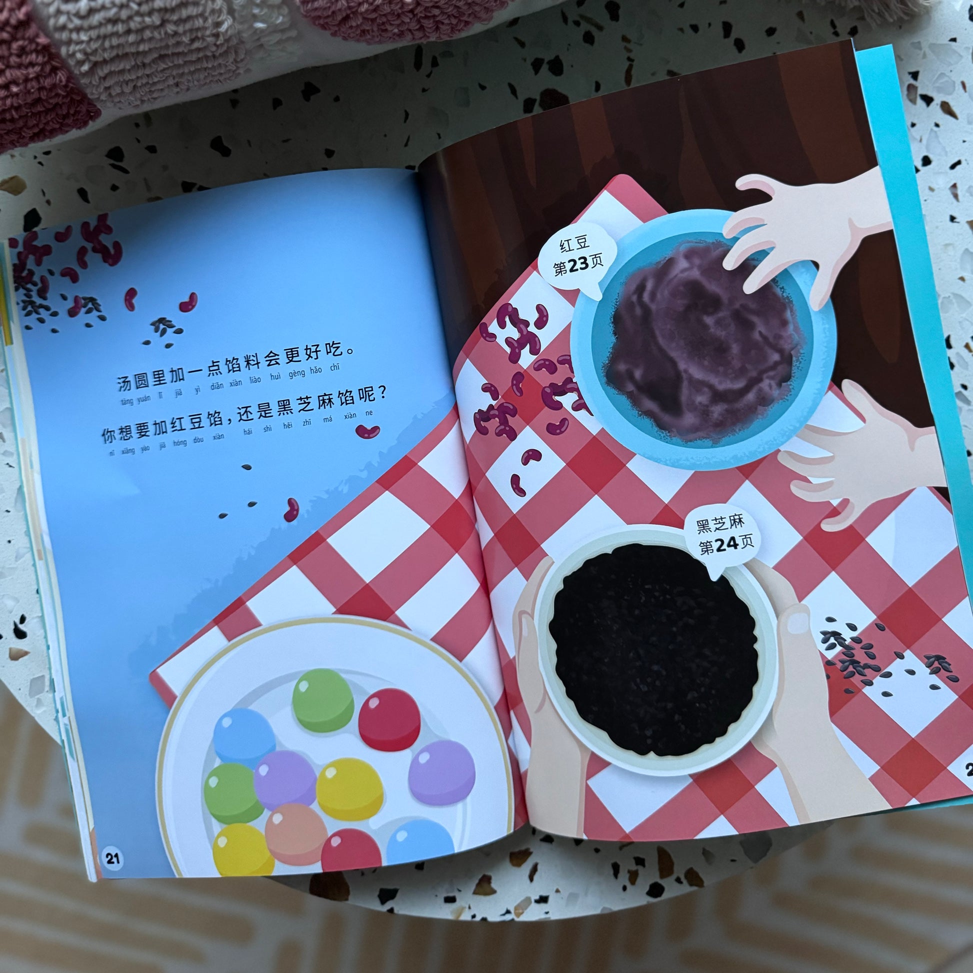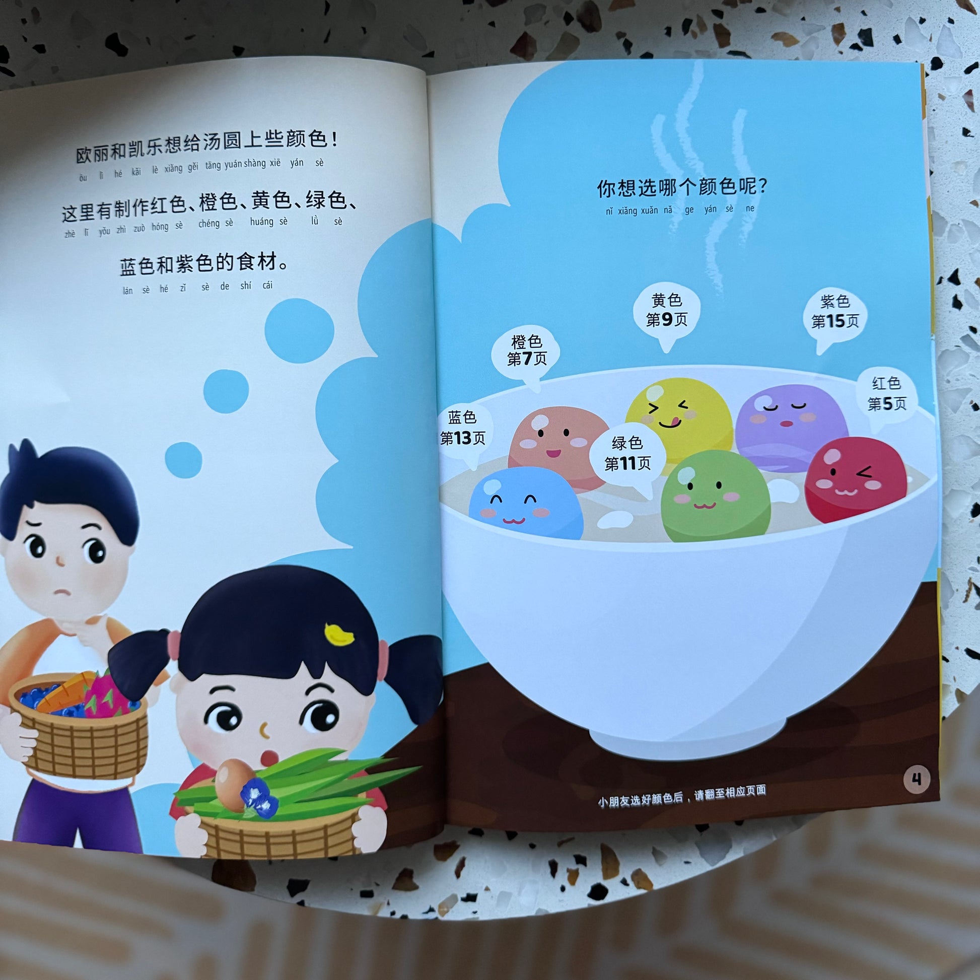 Mum teaches Olive and Kale to make a colourful bowl of "汤圆“ (glutinous rice balls) using all natural ingredients. In the process, they learn about colours, food ingredients, the simple steps of making "汤圆”, and the special meaning behind this simple desert, all in Mandarin!