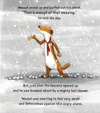 When Weasel is caught in a big, angry storm, he builds a fortress to hide in. But then he meets Mole, who loves to play in the wind and splash in the rain. Can Weasel learn to overcome his fears and find joy, whatever the weather?