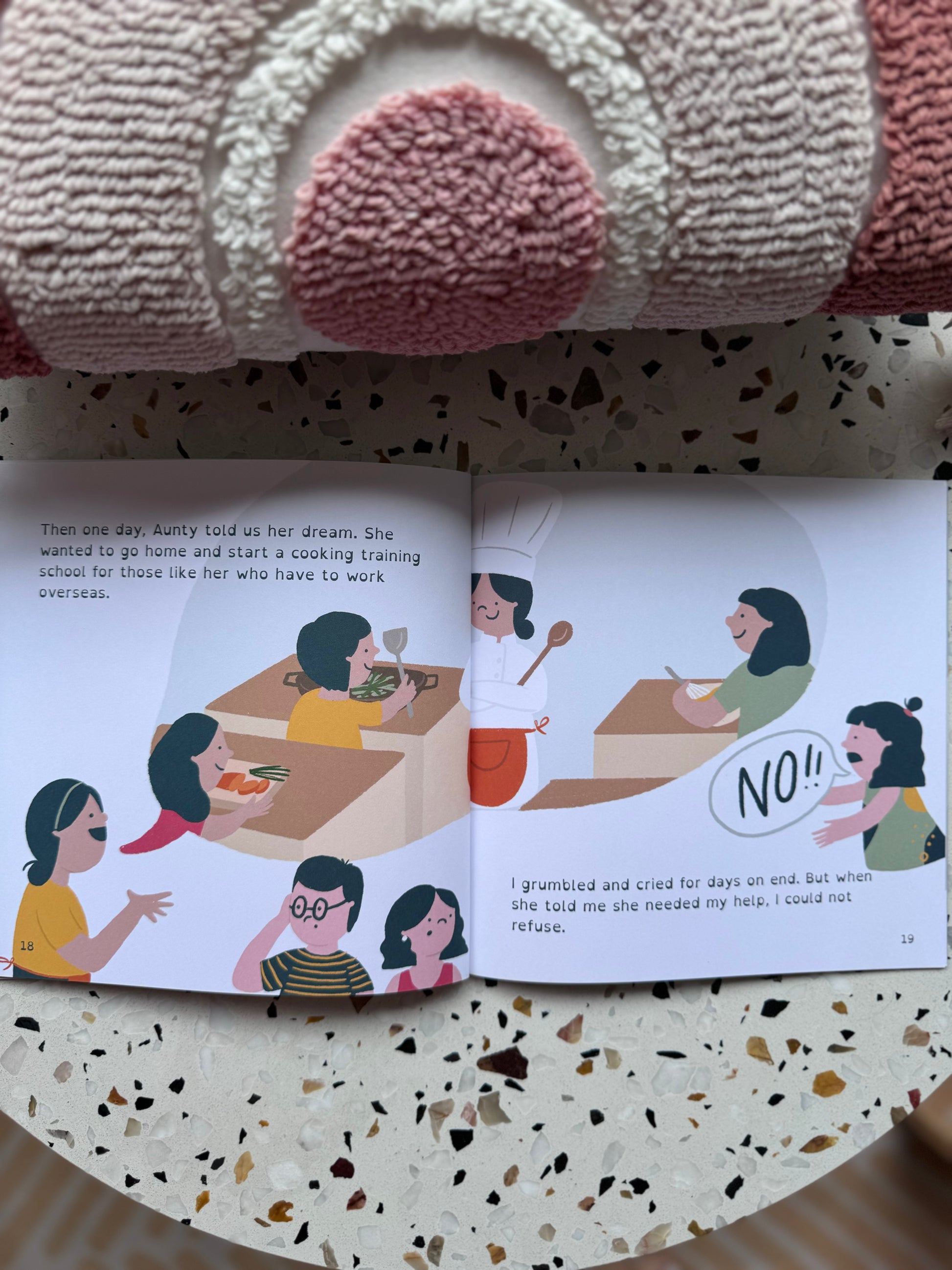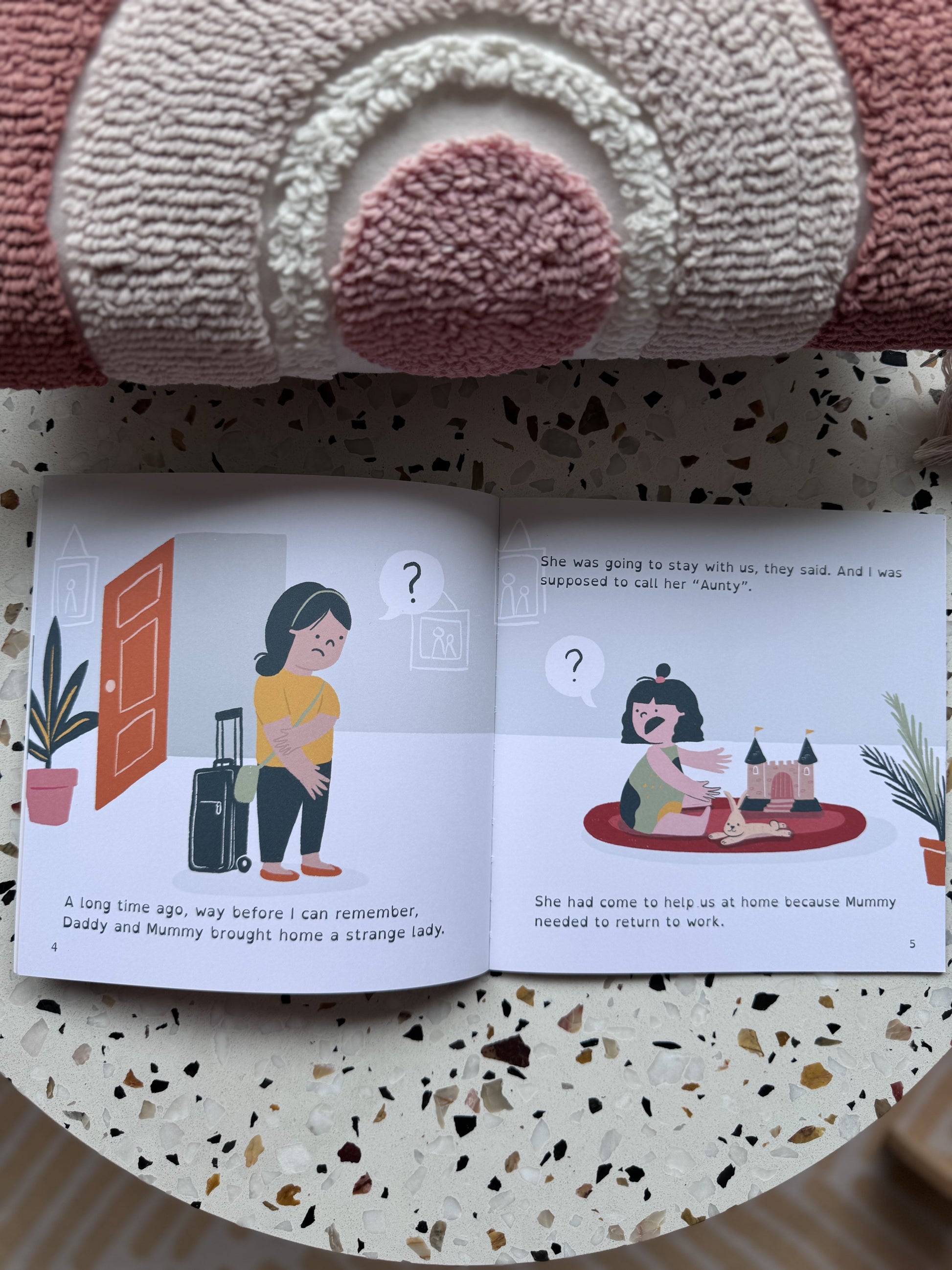 Have you had to say goodbye to a good friend or a close family member? Farewells are difficult, even more so for a young child. Follow this little girl on her journey, as she says goodbye to her domestic helper, or "Aunty", and learns to support her dreams.