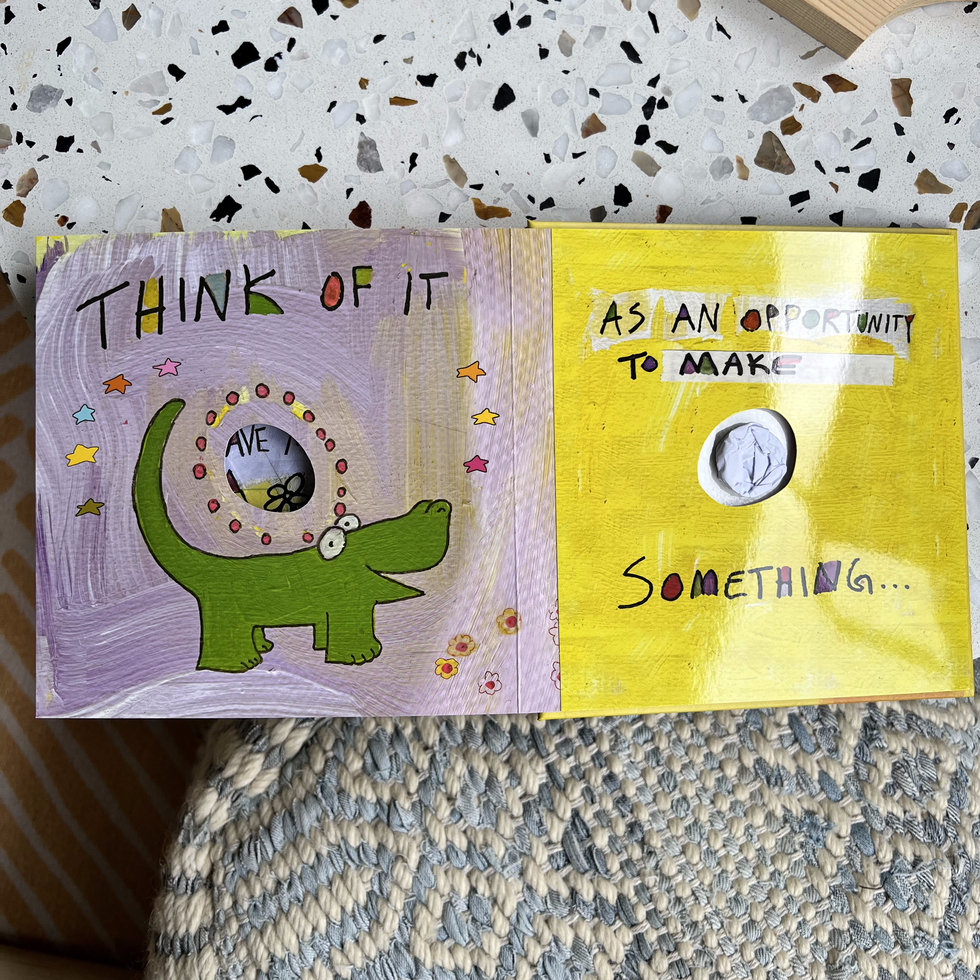 A life lesson that all parents want their children to learn: it’s OK to make a mistake. In fact, hooray for mistakes! A mistake is an adventure in creativity, a portal of discovery. A spill doesn’t ruin a drawing—not when it becomes the shape of a goofy animal. And an accidental tear in your paper? Don’t be upset about it when you can turn it into the roaring mouth of an alligator.