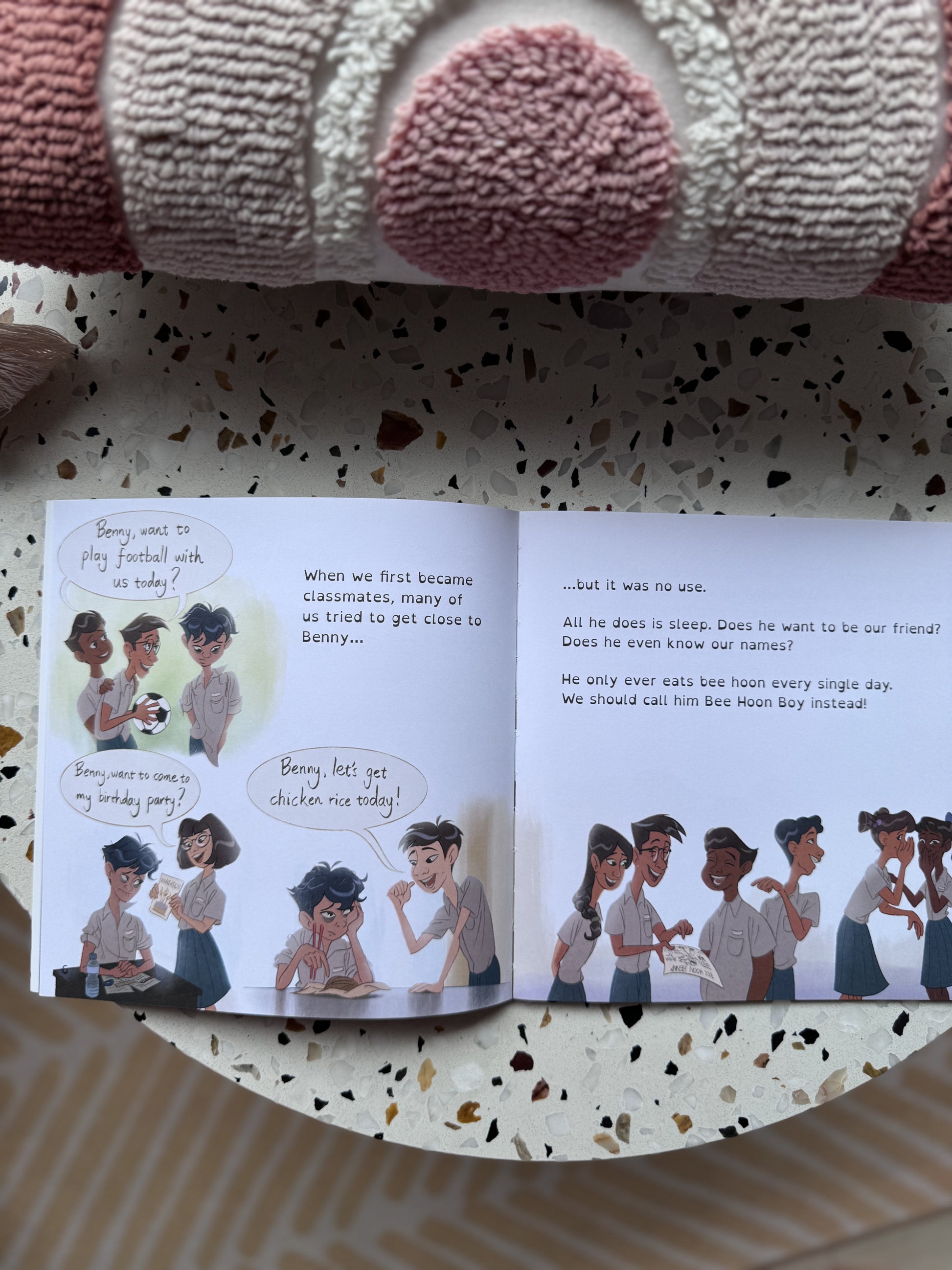 What would you do if your classmate slept all the time and had noodles in his hair? Welcome to Bee Hoon Boy’s world! Everyone keeps their distance from Bee Hoon Boy, but is there more to him than meets the eye?