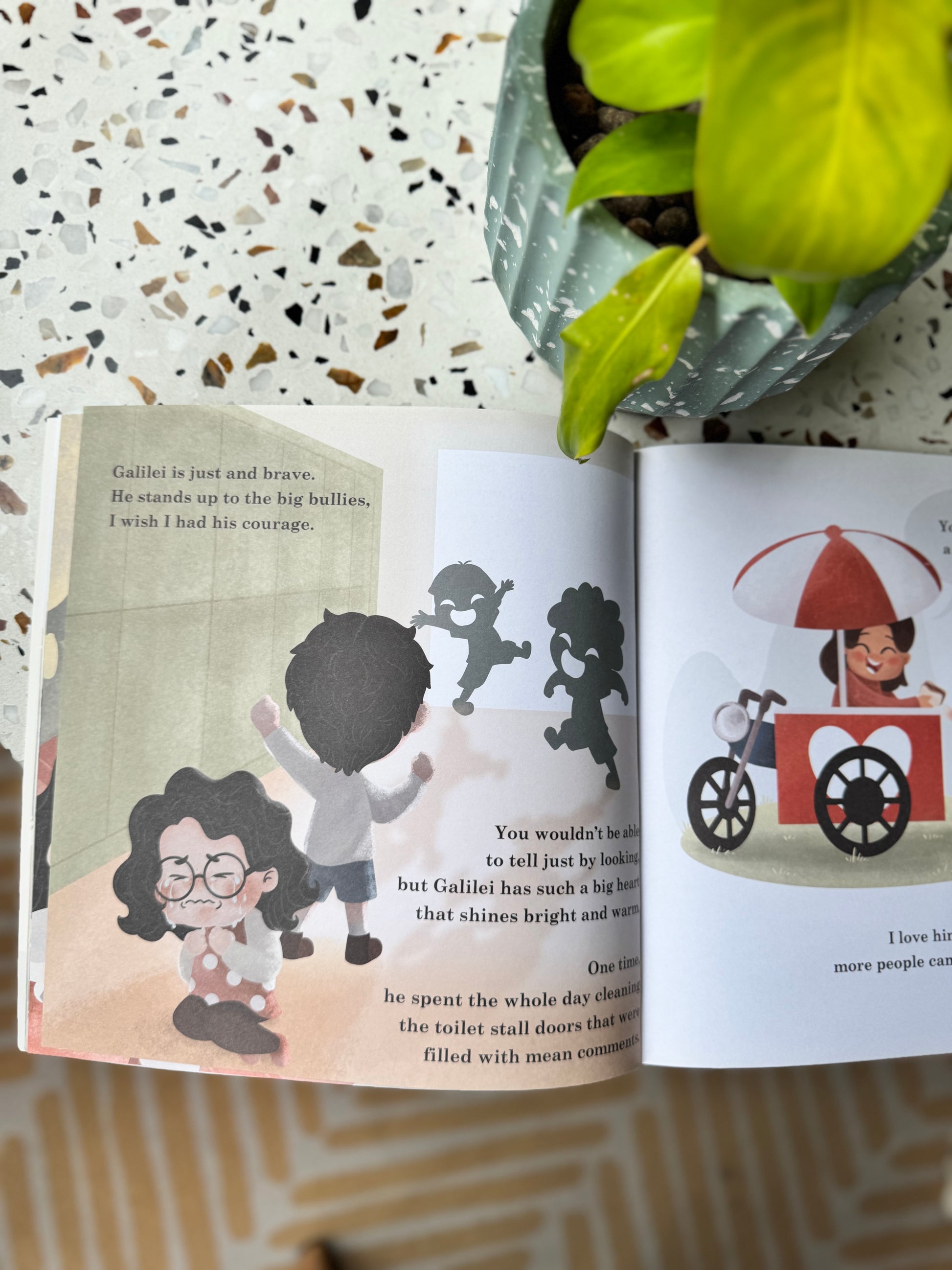 Galileo, a child often teased for being ‘different,’ and Galilei, who hides her insecurities behind popularity, learn that true friendship begins when they embrace their unique selves. Through their journey, readers discover: