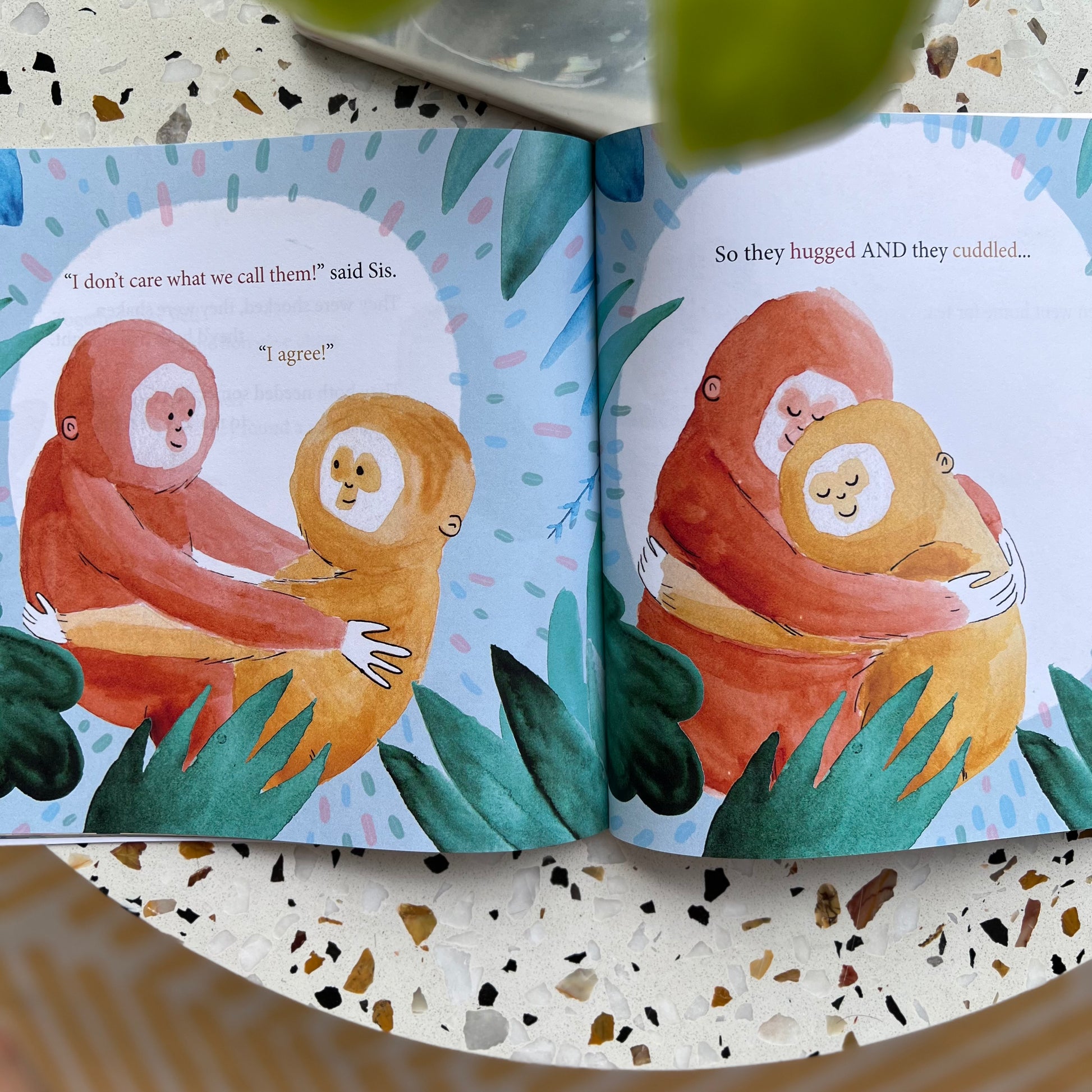 This charming, rhyming picture book tells the story of two gibbons who really love each other but don't always get along. When they are asked to embrace and make up, they start squabbling about whether the embrace is called a Hug or a Cuddle. They then set off on a hilarious, heartwarming adventure, hugging and cuddling other animals as they try to figure it out. And in the end, they realise that it doesn't matter if it's called a Hug or a Cuddle, all they need is each other.