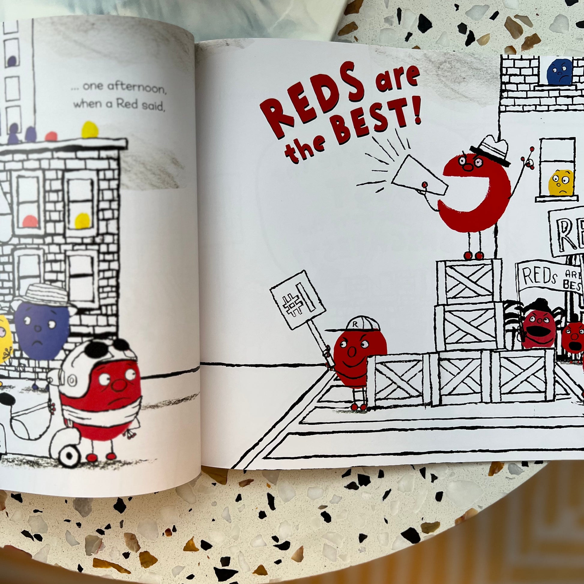 All special in their own ways, all living in harmony--until one day, a Red declares that Reds are the best! That starts a color kerfuffle. When the colors decide to separate, is there anything that can change their minds?