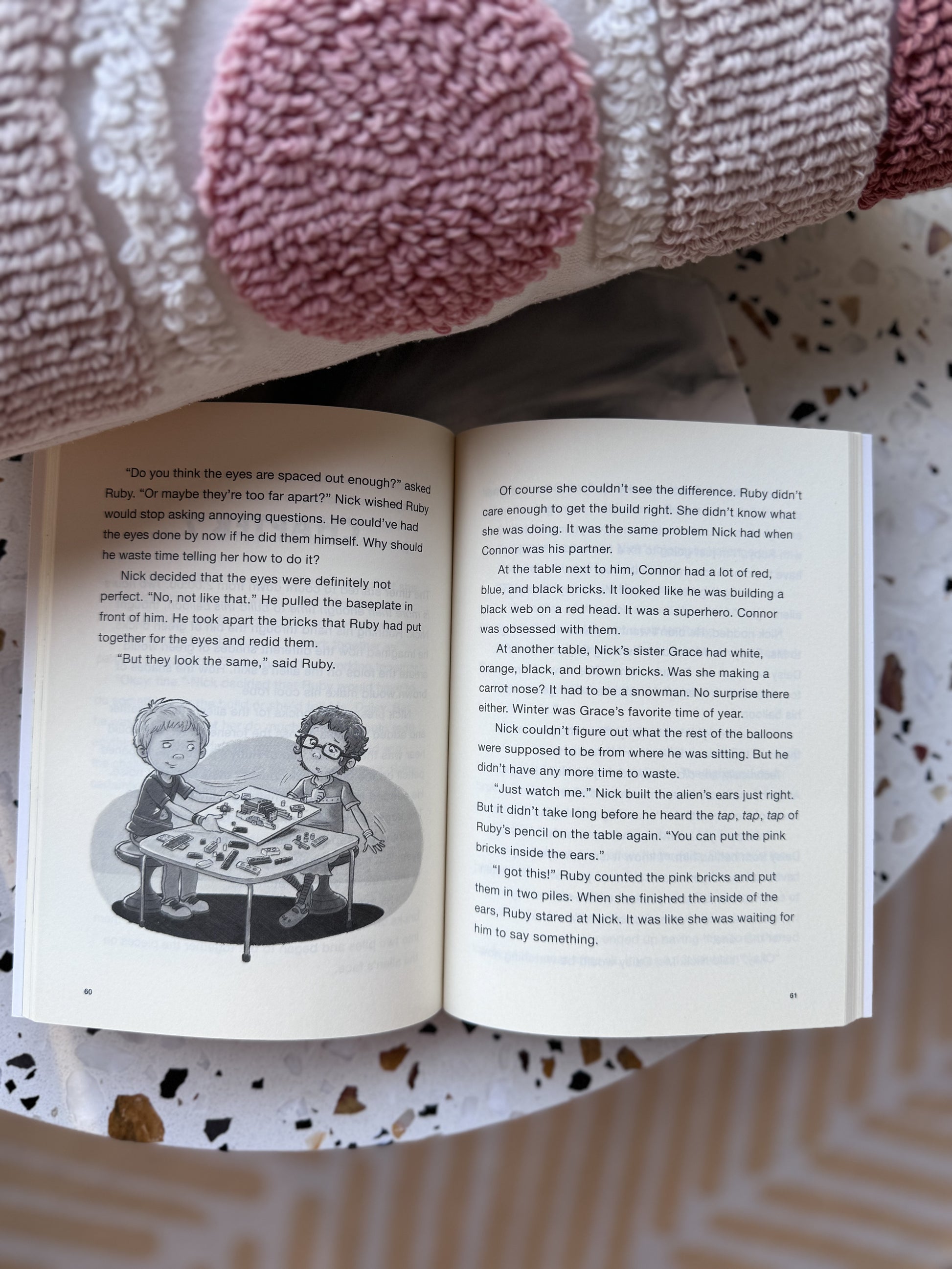 When the Infinity Rainbow Club at school competes in a brick builder challenge, Nick can't wait to participate! Until he learns he must have a partner--the new girl. Nick wants to work alone. But to win, he'll have to figure out how to be part of a team.