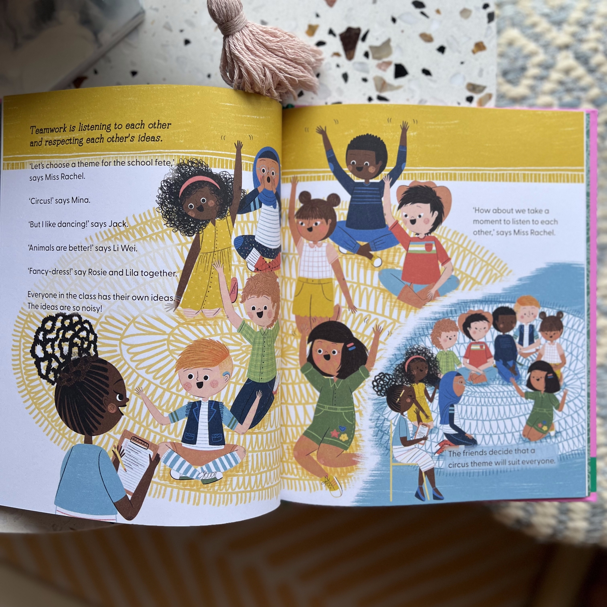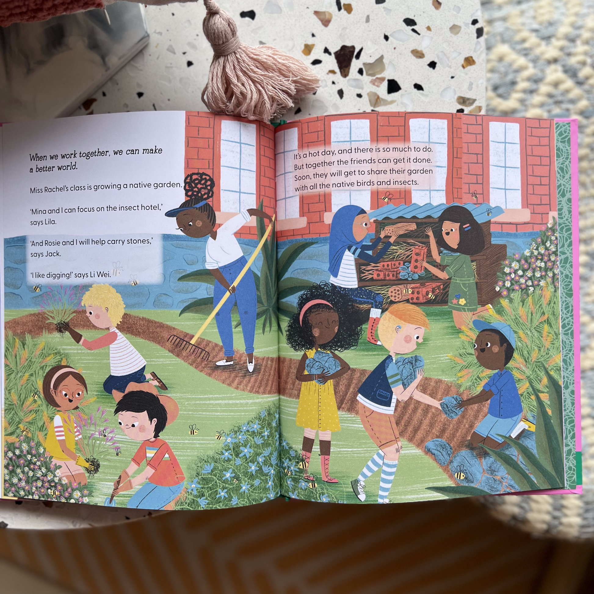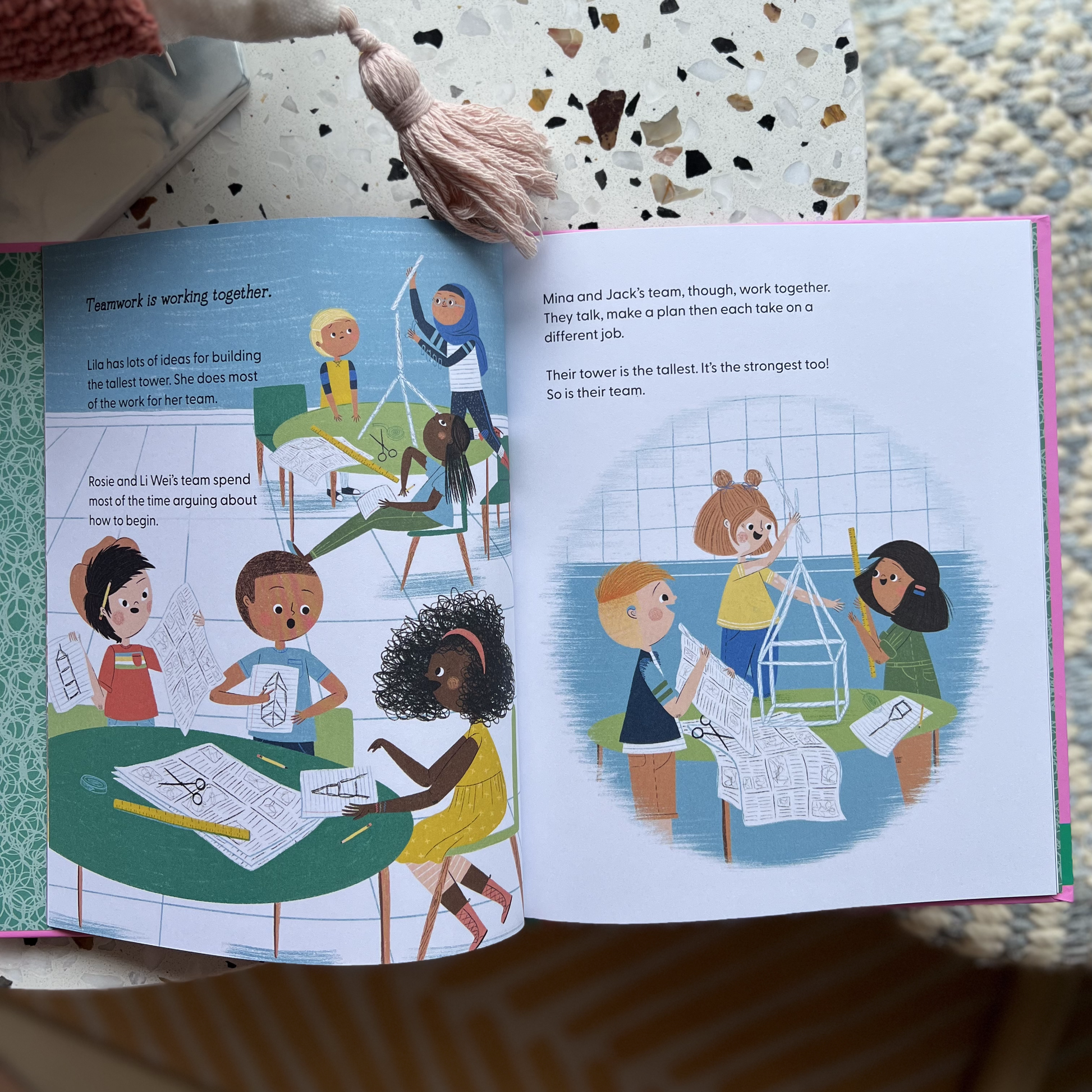 Through colourful illustrations and diverse characters, this book demonstrates the joy of working together towards a shared goal.