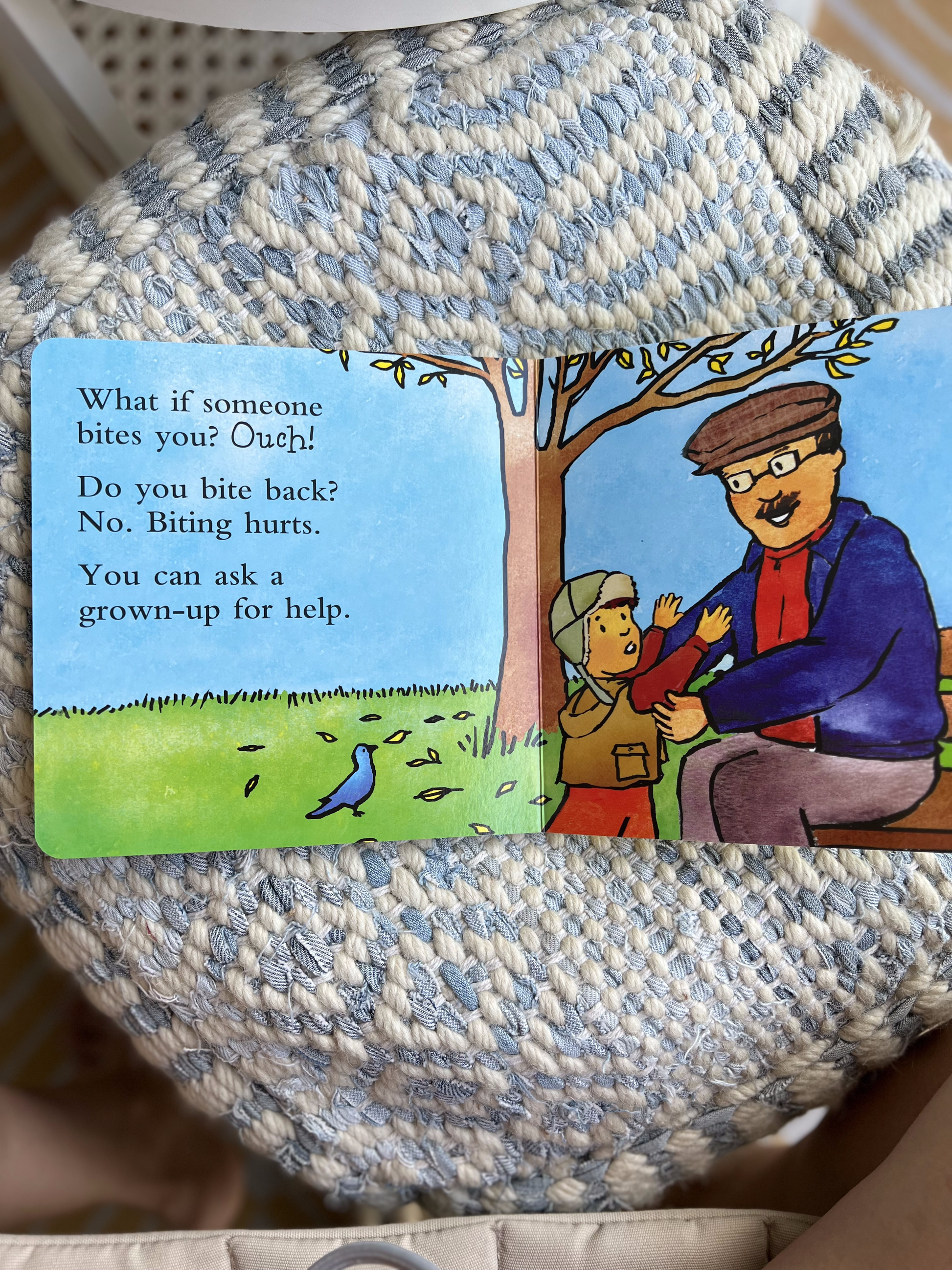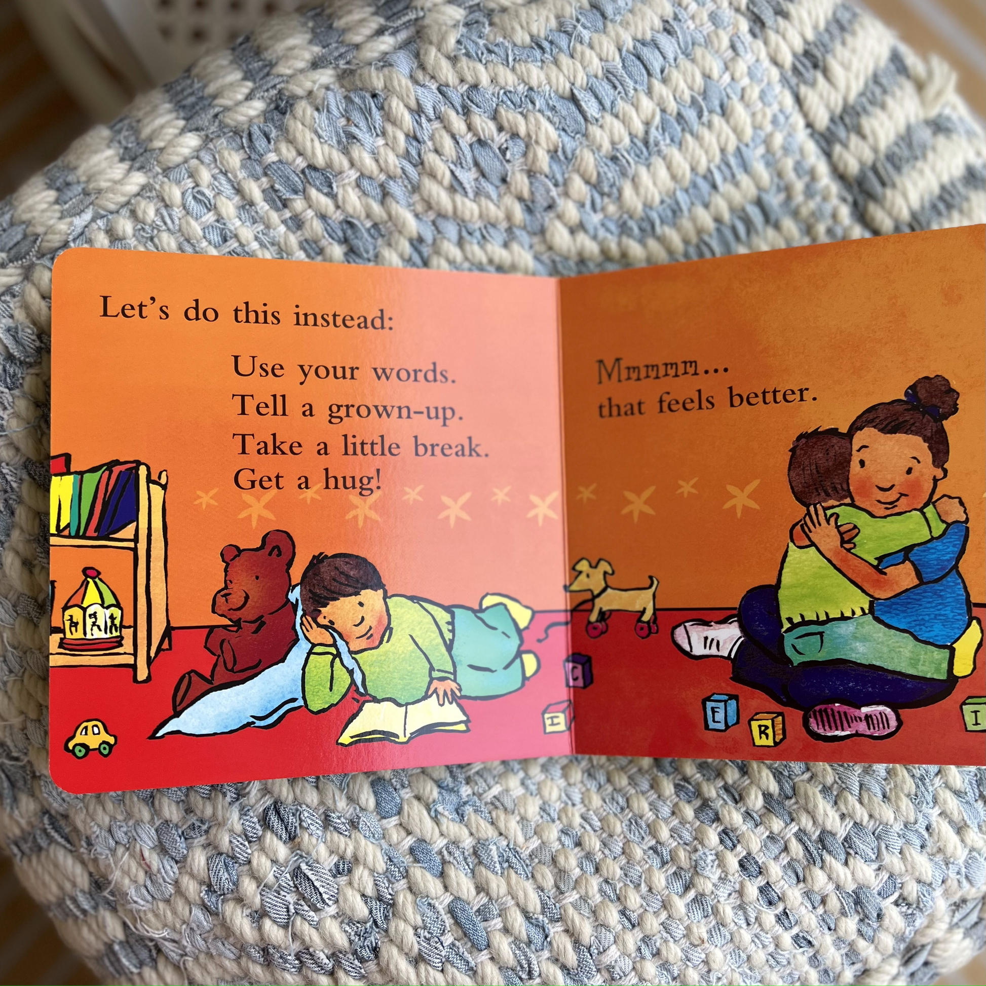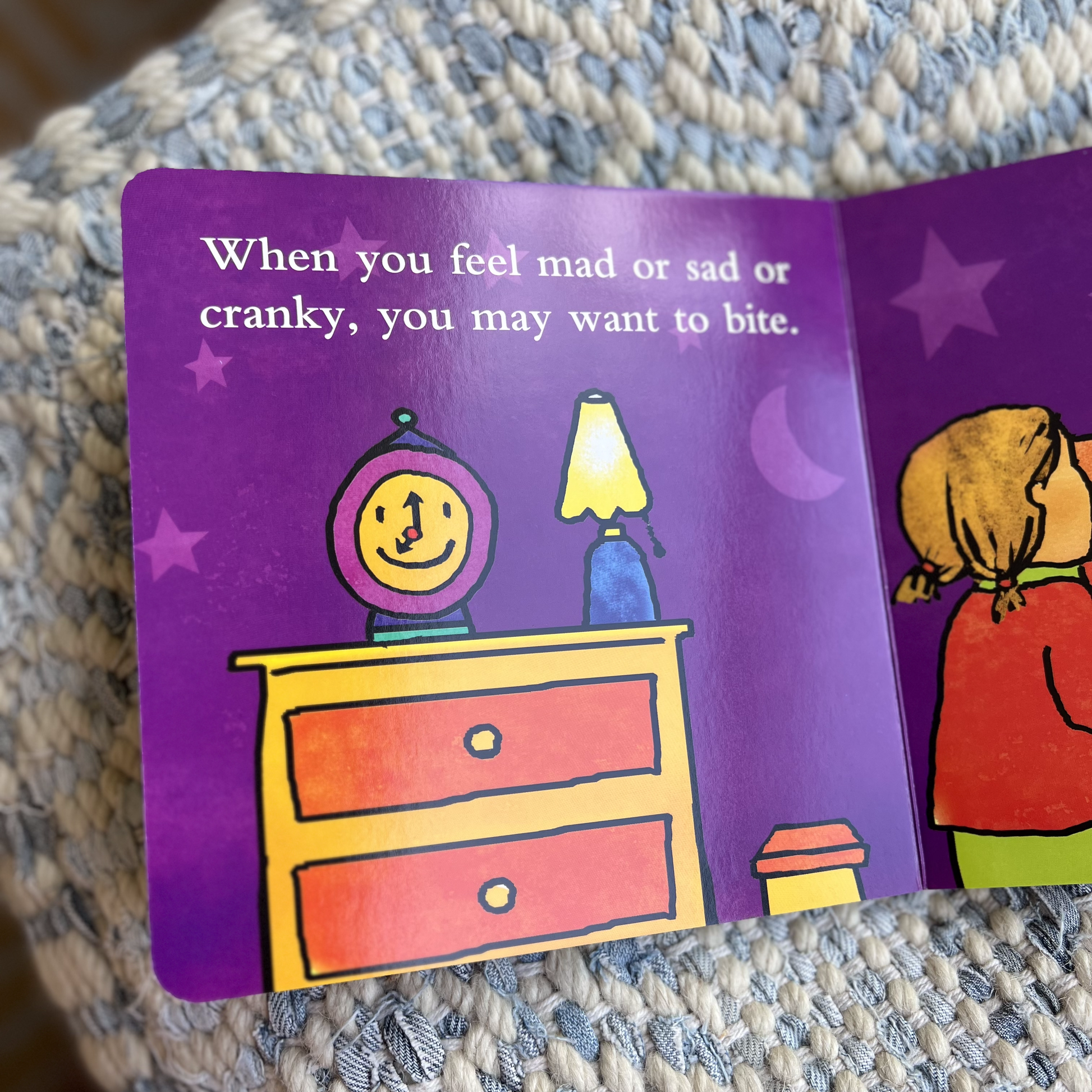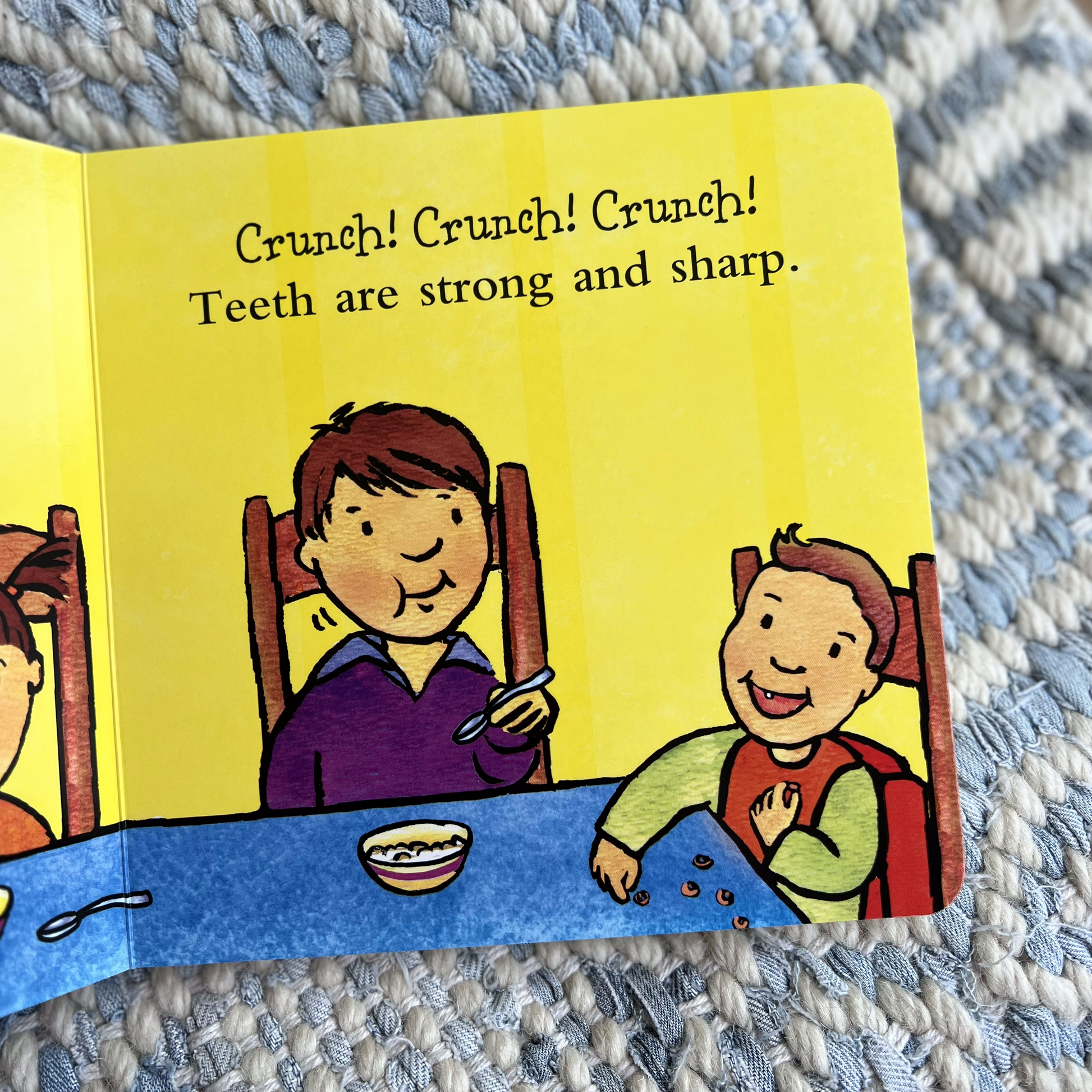 “Crunch crunch crunch. Teeth are strong and sharp. Crunch crunch crunch. Teeth can help you chew. But teeth are not for biting. Ouch! Biting hurts.” Sooner or later, almost all young children will bite someone—a friend, a classmate, a parent. This upbeat, colorful, virtually indestructible book helps prevent biting and teaches positive alternatives.