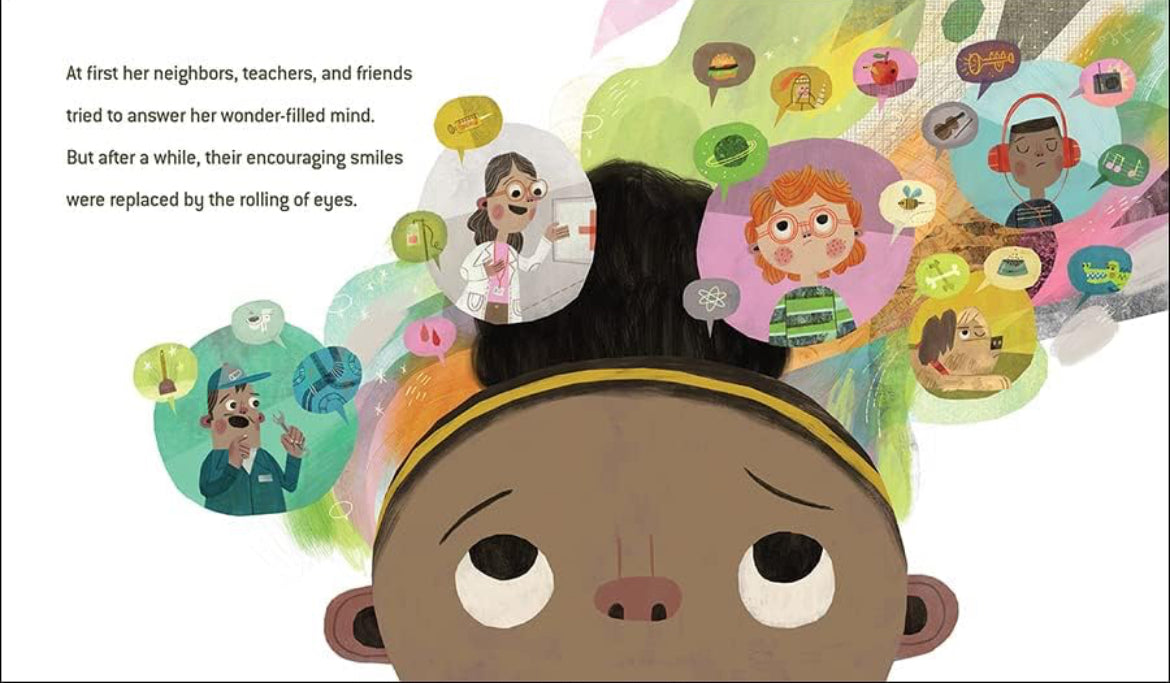 These are just some of the questions that bubble forth from one little girl with twinkling eyes and a curious mind. When the girl finds that her big questions make some people uncomfortable, she stops. But then she learns that her questions can solve problems and that asking questions is how we learn and grow.