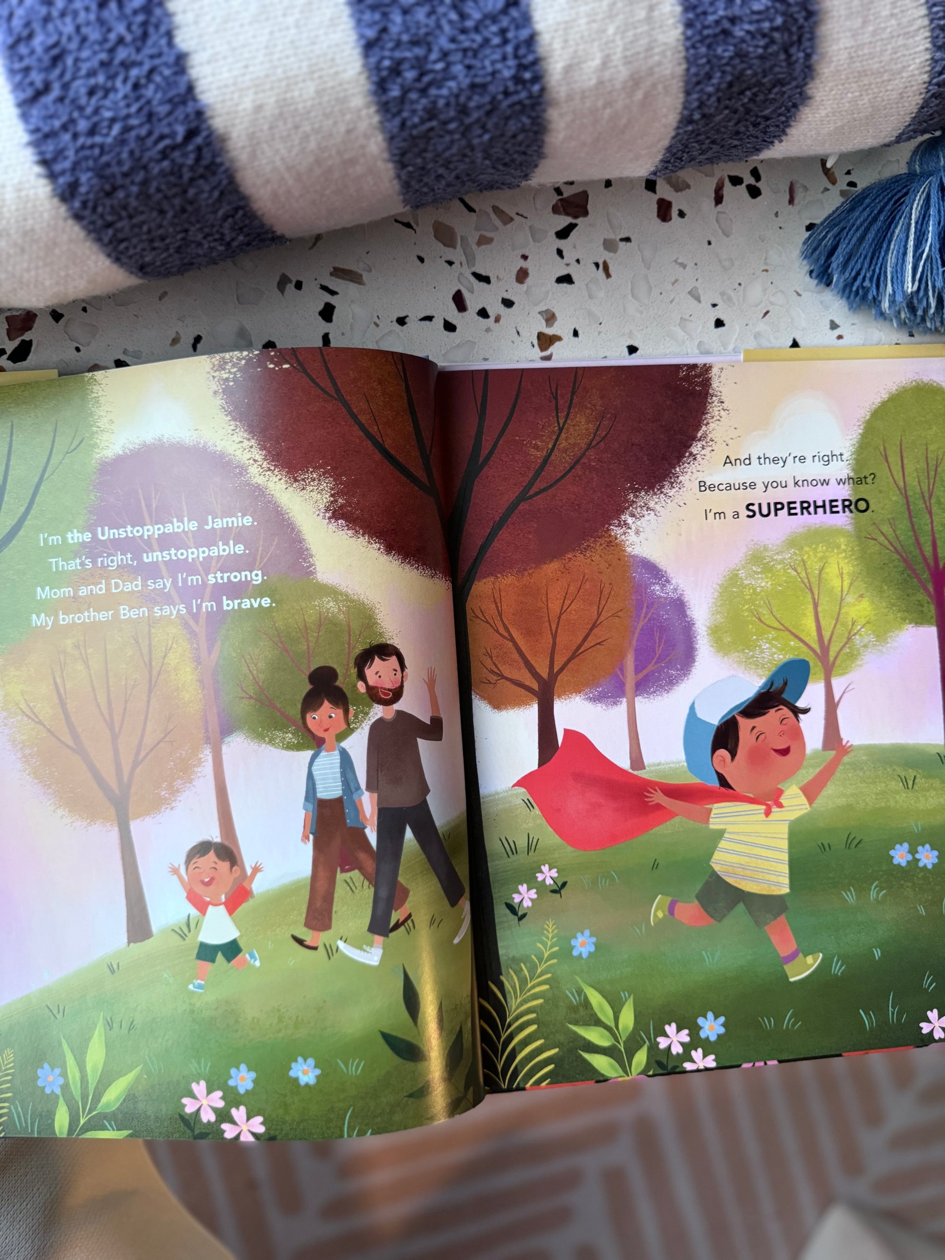 Jamie likes to pretend he’s a superhero. With his cape and gadgets, he feels like he can face anything. When his picture is chosen to be shown in Times Square for the NDSS Buddy Walk®, his family travels to New York City to see it. As he makes his way through the loud, busy, unfamiliar city, Jamie discovers that he doesn’t have all his special tools. But he soon realizes that it isn’t what he wears or the gadgets he uses that make him brave―it’s who he is inside.
