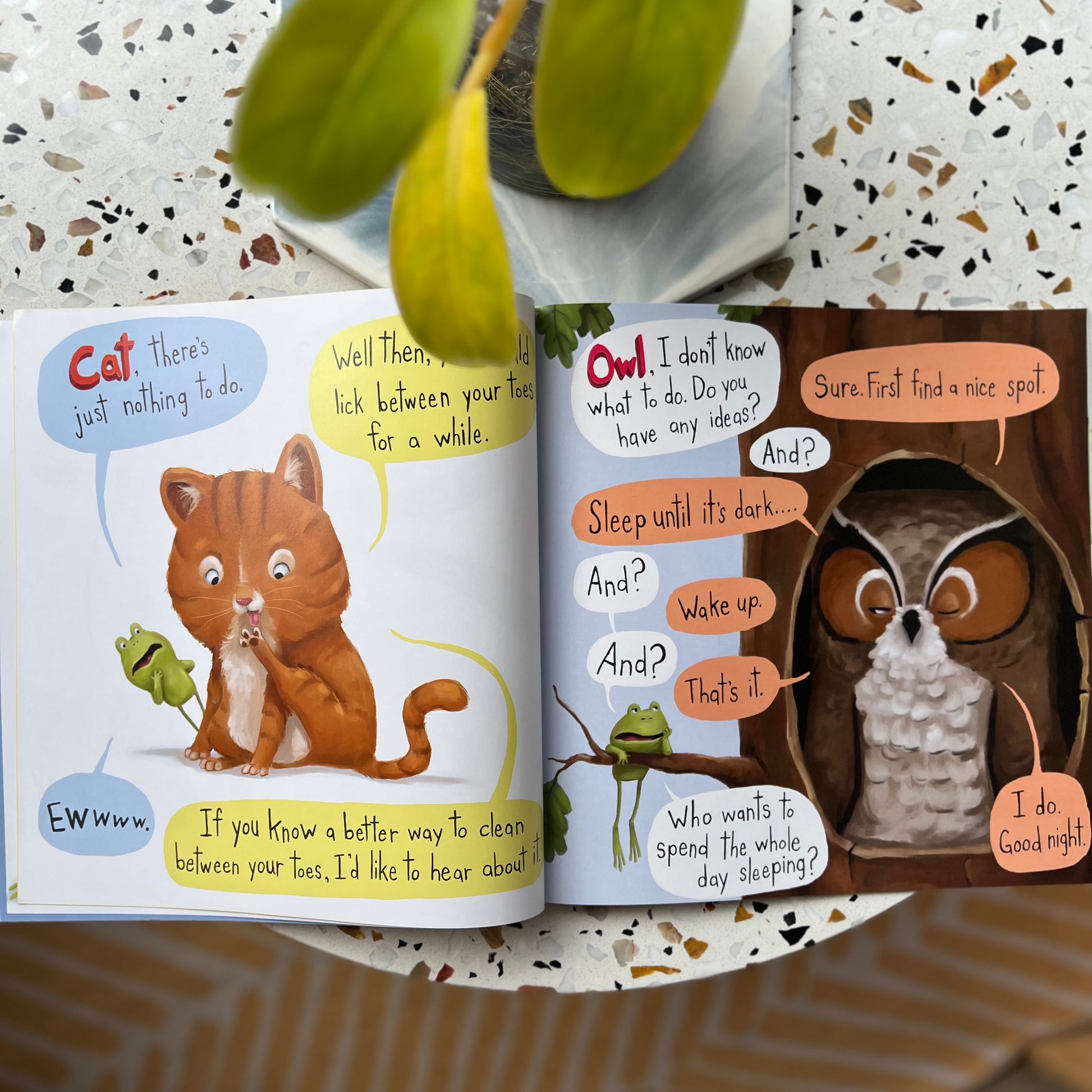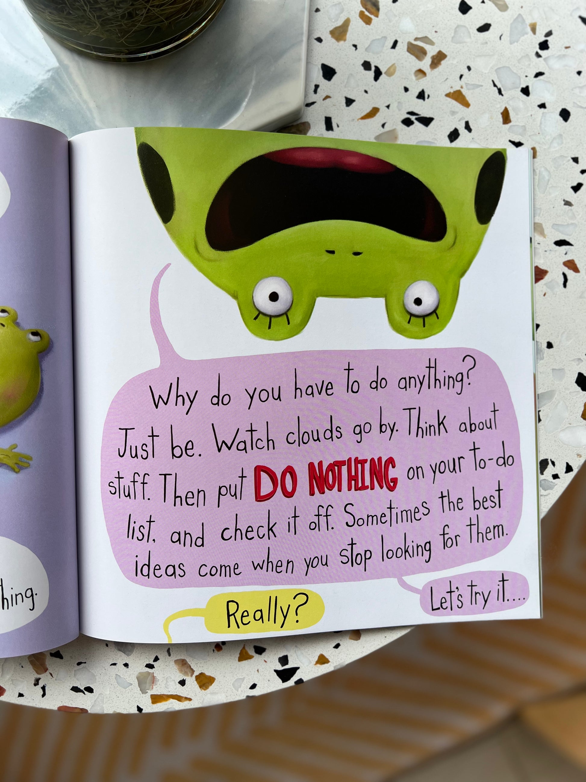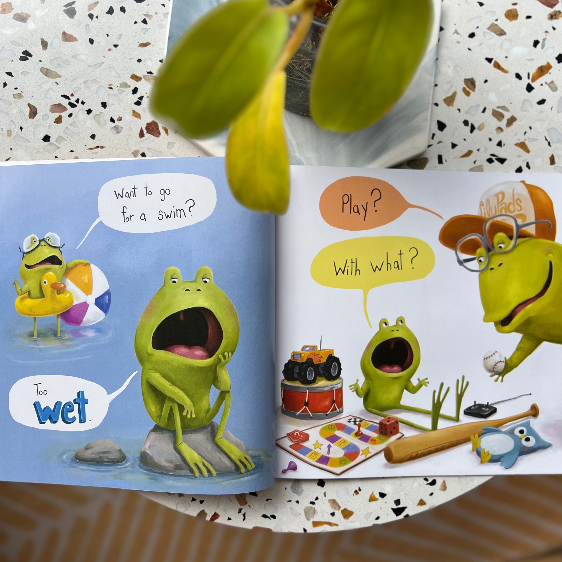 Frog is bored. He can’t find ANYTHING to do—even when his animal friends make good suggestions, like sleeping all day, licking between his toes, or hopping around and then staring off into space. Will he find a fun and exciting way to spend his day? Featuring the beloved characters from I Don’t Want to Be a Frog and I Don’t Want to Be Big, this new story is sure to bring a smile to every kid who’s ever lamented “There’s nothing to do!”
