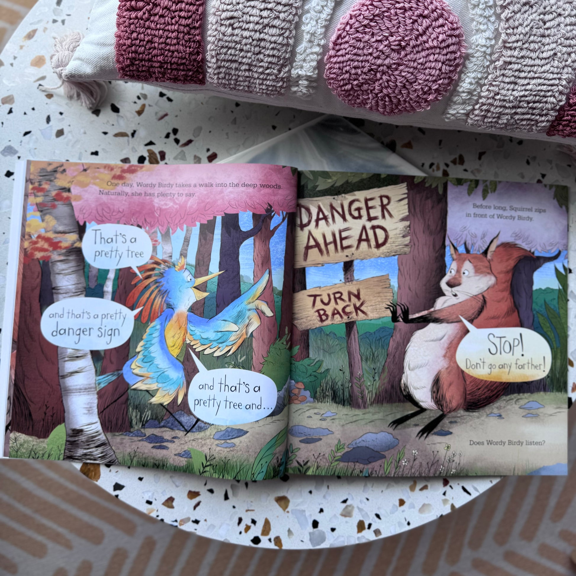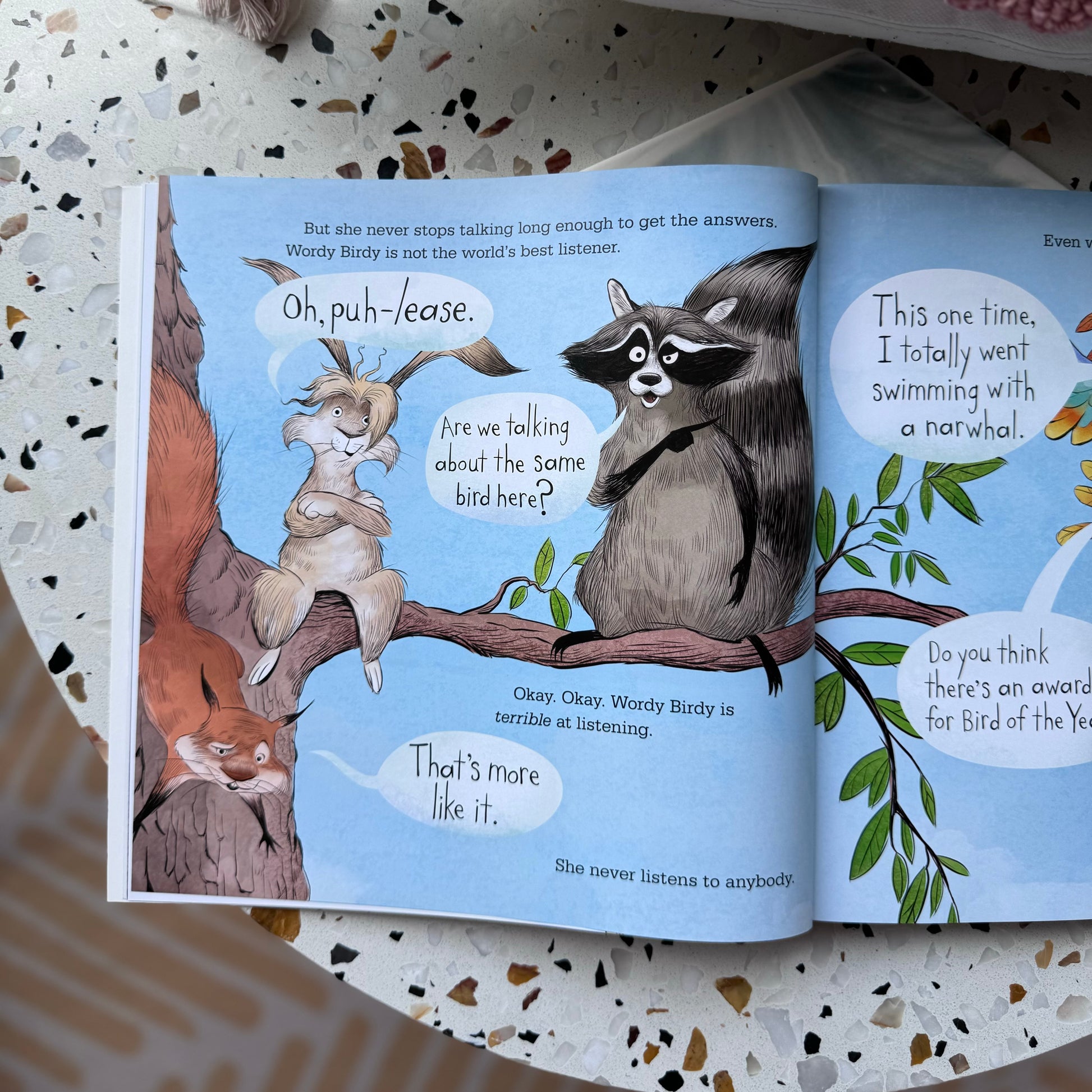 Meet Wordy Birdy, a very chatty bird who talks WAY more than she listens!