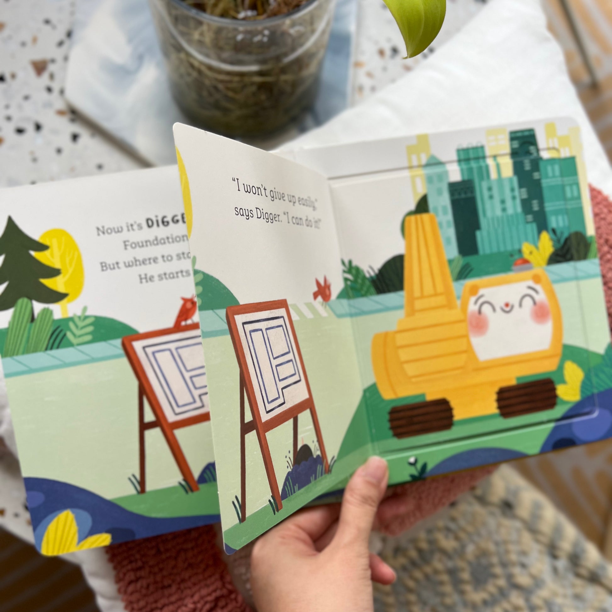 Here on the construction site, Bulldozer, Digger, Dump Truck, Concrete Mixer and Crane have a tough job ahead of them. Each one has their own story of resilience to tell, as they meet the challenge to get the job done!