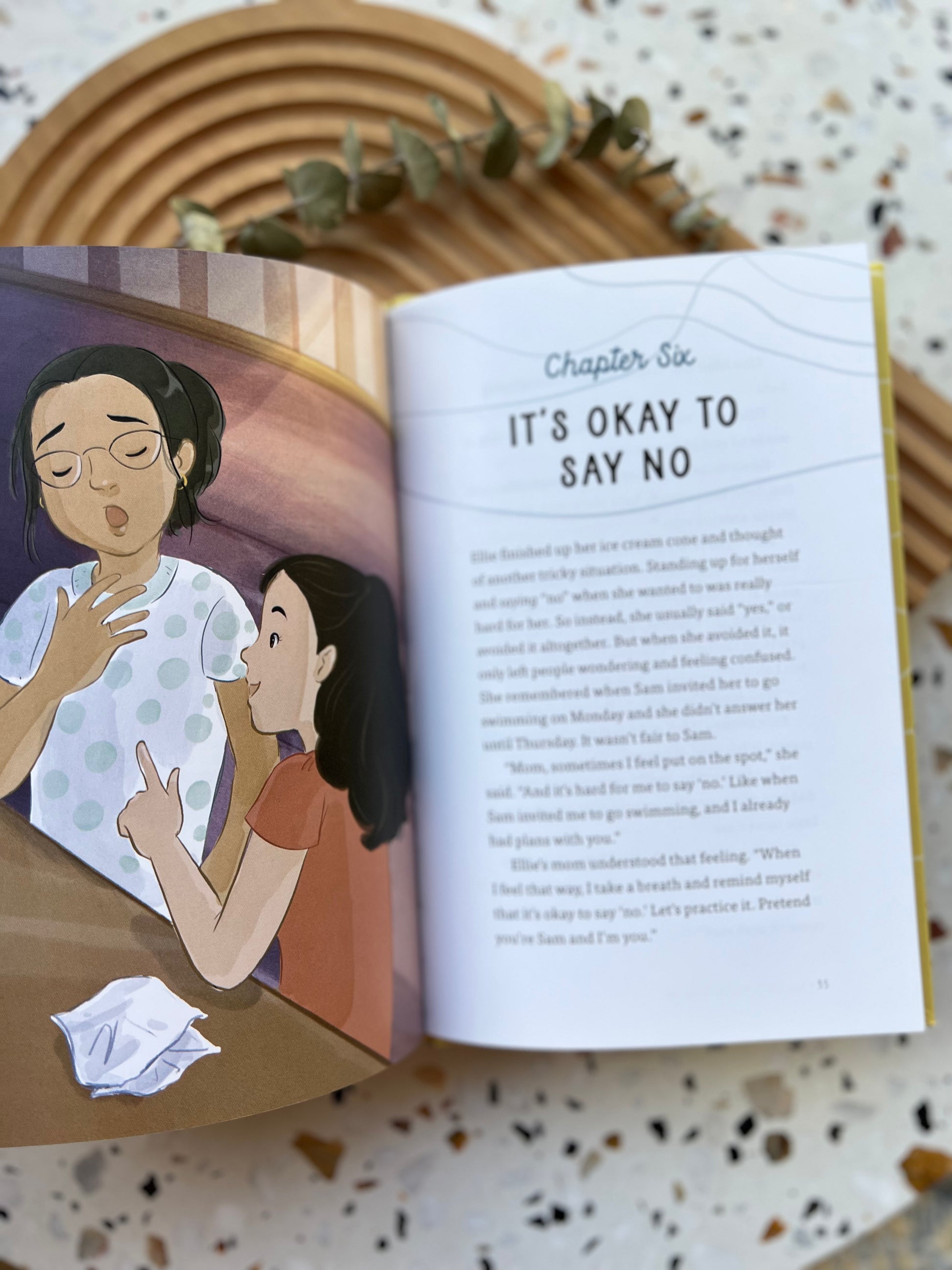 Ellie feels like she is disappointing people if she says “no.” One way or another, she thinks she is hurting someone’s feelings. Or she puts other people’s wants or needs in front of her own. With help from her parents and her teacher, Ellie finds the strength to be honest with people and do the right thing for herself by learning how to say “no.”
